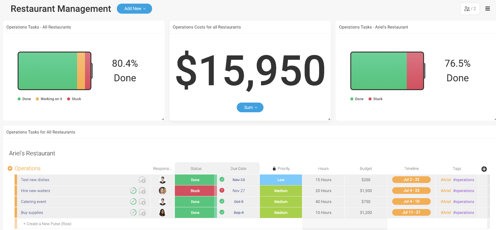 Los paneles son una excelente forma de mostrar lo importante en un solo lugar. Con 15 widgets disponibles, los usuarios ahora pueden comprender el progreso de un proyecto, hacer un seguimiento del presupuesto, calcular la carga de trabajo de los compañeros del equipo, ¡y mucho más! En el plan Pro, puedes crear tantos paneles y widgets como quieras. Pero cada panel puede contener información de 10 tableros.