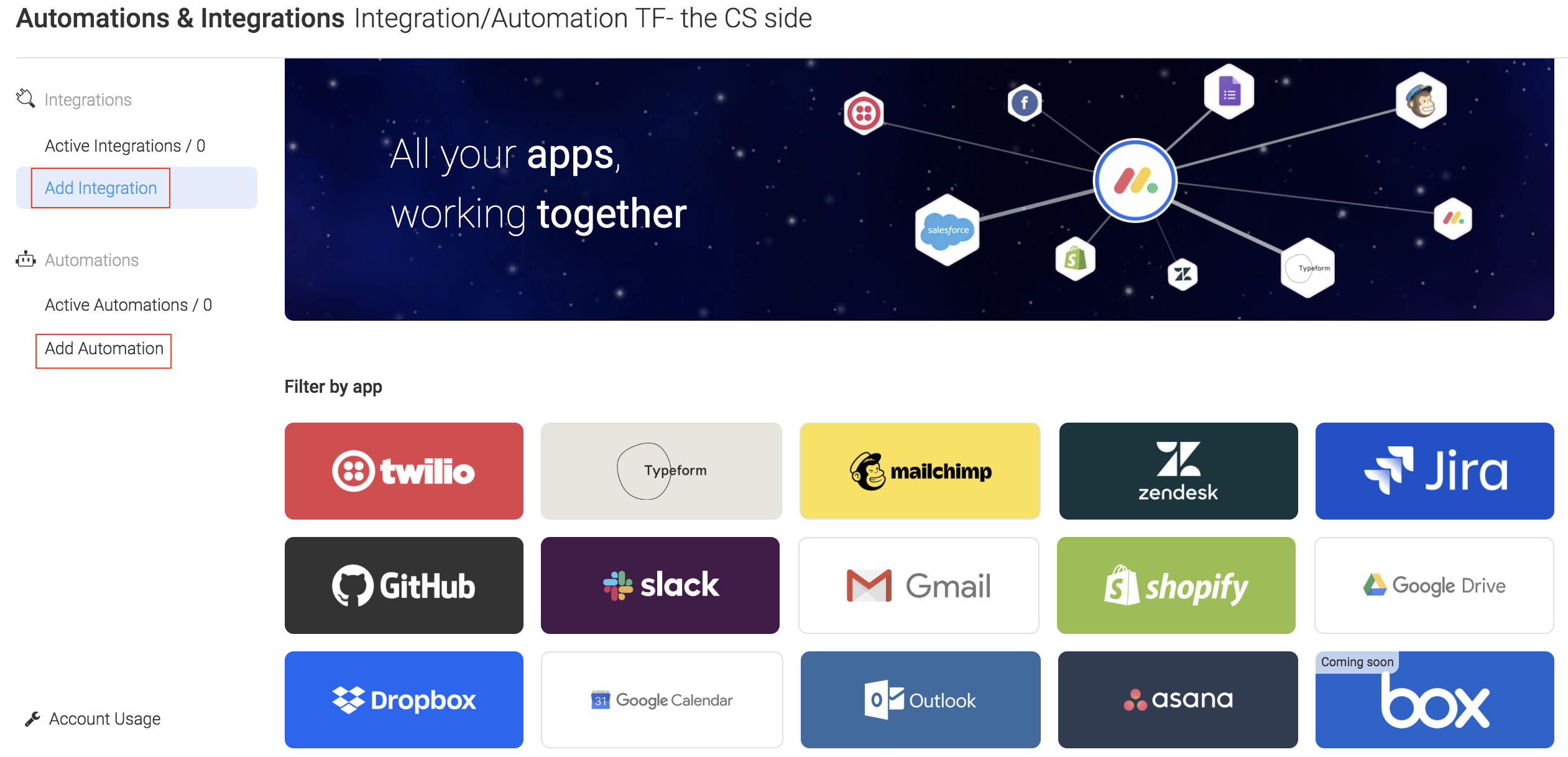 ¿Quieres eliminar los pasos manuales y automatizar tus procesos? ¿Quieres integrar monday.com con otras plataformas? En el plan Corporativo, tienes 100.000 acciones asignadas para automatizaciones y 100.000 acciones asignadas para integraciones por mes. Haz clic aquí para obtener más información sobre la estructura de precios para automatizaciones/integraciones.